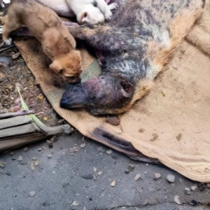 On the desolate fringes of a quiet town, in a place where the shadows seem to swallow the most vulnerable, a mother dog was fighting a battle…