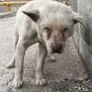 Some heartbreaks don’t heal with time; they simply wander. On a dusty road, a white dog moves with a staggering gait, his body so thin that every…