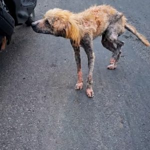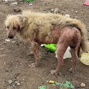 He was spotted wandering the desolate streets completely alone, a mere shadow of what a dog should be. His condition was horrifying to look at. His skin…