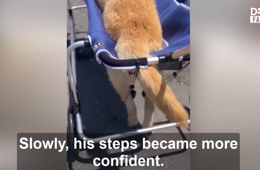 We fitted him with a custom walking aid—a set of wheels designed to support his paralyzed back half. At first, he was stiff and uncertain. He wobbled, his movements awkward and confused by the new equipment. He looked at us as if to ask how he was supposed to navigate a world he had only ever seen from the end of a tether.