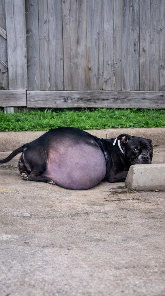 Today, Bonita looks like a completely different dog. That giant belly is gone, and she’s starting to gain back “good” weight.