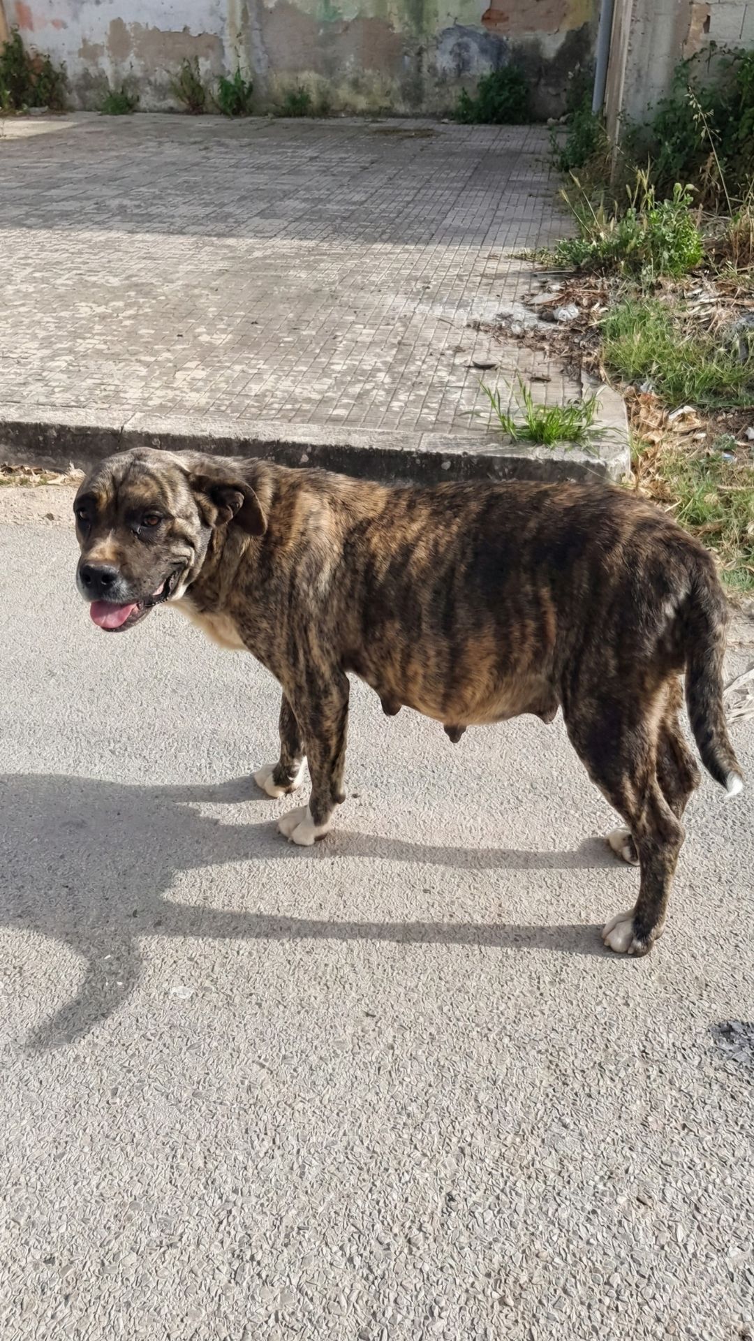 As the family approached the panting dog, the full extent of her suffering became painfully clear.