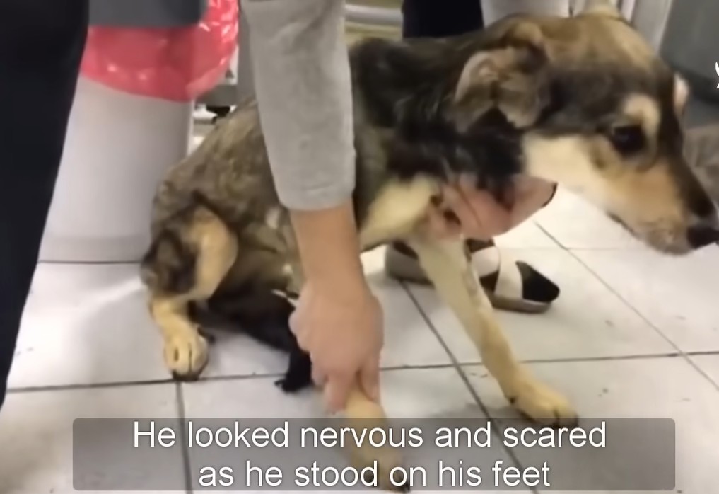 - Assisting him onto his four paws for mere seconds at a time to slowly awaken his completely dormant, heavily traumatized nervous system.