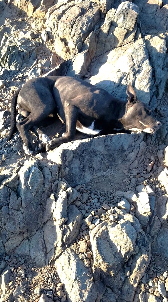 He was a two-year-old Pit Bull, black and white, leaning his head heavily against a jagged rock. He wasn’t just resting; he was fading. As Andi drew closer, the horror of the situation became clear. The dog had been shot multiple times. He was bleeding from an open abdominal wound, and his body was riddled with bullet fragments.