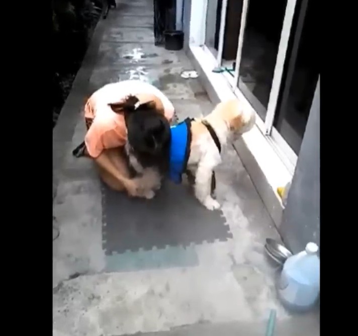 - Providing gentle, soothing massages to his paralyzed hind legs to safely stimulate crucial blood circulation.