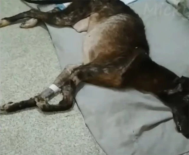 Despite his weakened state, Luni wasn’t ready to let go. Moved by his silent plea for help, his rescuers rushed him to a veterinary clinic, marking the start of a long and emotional road to healing.
