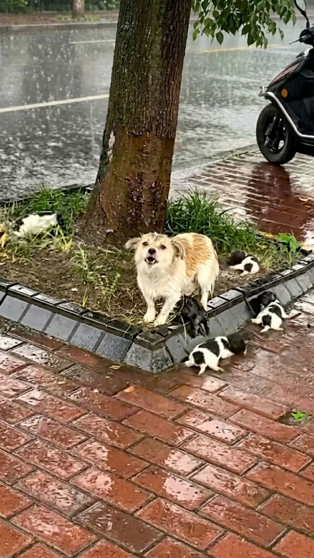 VIDEO: She Cried Loudly in the Rain, Helplessly Watching Her Puppies Tremble