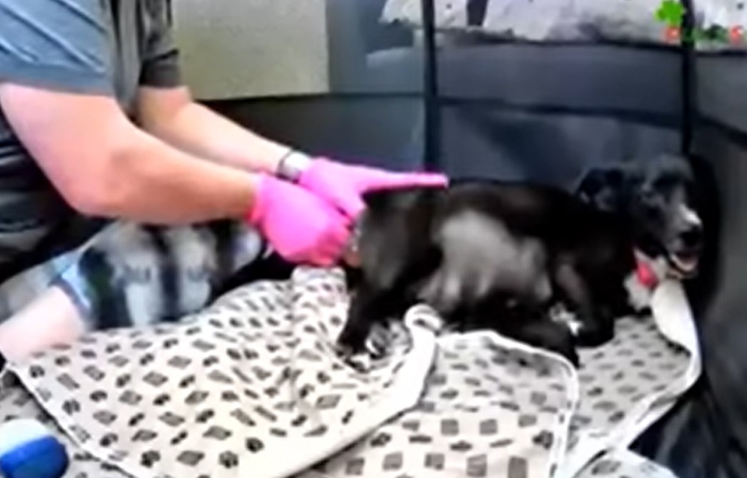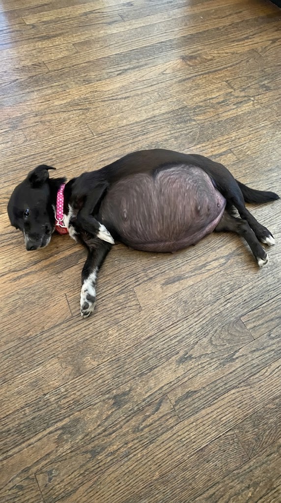 There is a vulnerability in a pregnant dog during labor that touches the heart. She looked to her caregivers for comfort, her gentle nature shining through even in her most uncomfortable moments.