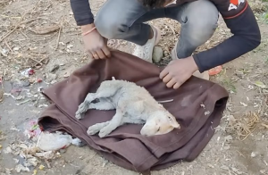 In a narrow, dusty corner of a bustling Indian neighborhood, amidst the roar of traffic and the rush of daily life, a profound act of love was unfolding in total silence. On the hard ground, a thin mother dog lay stretched out, her body forming a protective sanctuary around her smallest puppy. To any passerby, the tiny creature looked still—too still. Most would have assumed he was already gone.