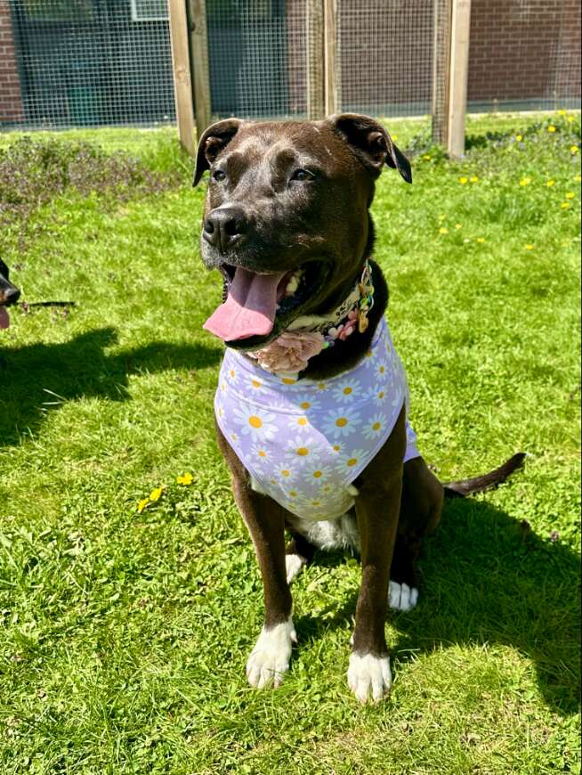 Despite her incredibly gentle nature and love for people, her breed often carries an unfair stigma. Heather noticed that some people would steer clear of them on walks, reacting to fear rather than the dog in front of them.