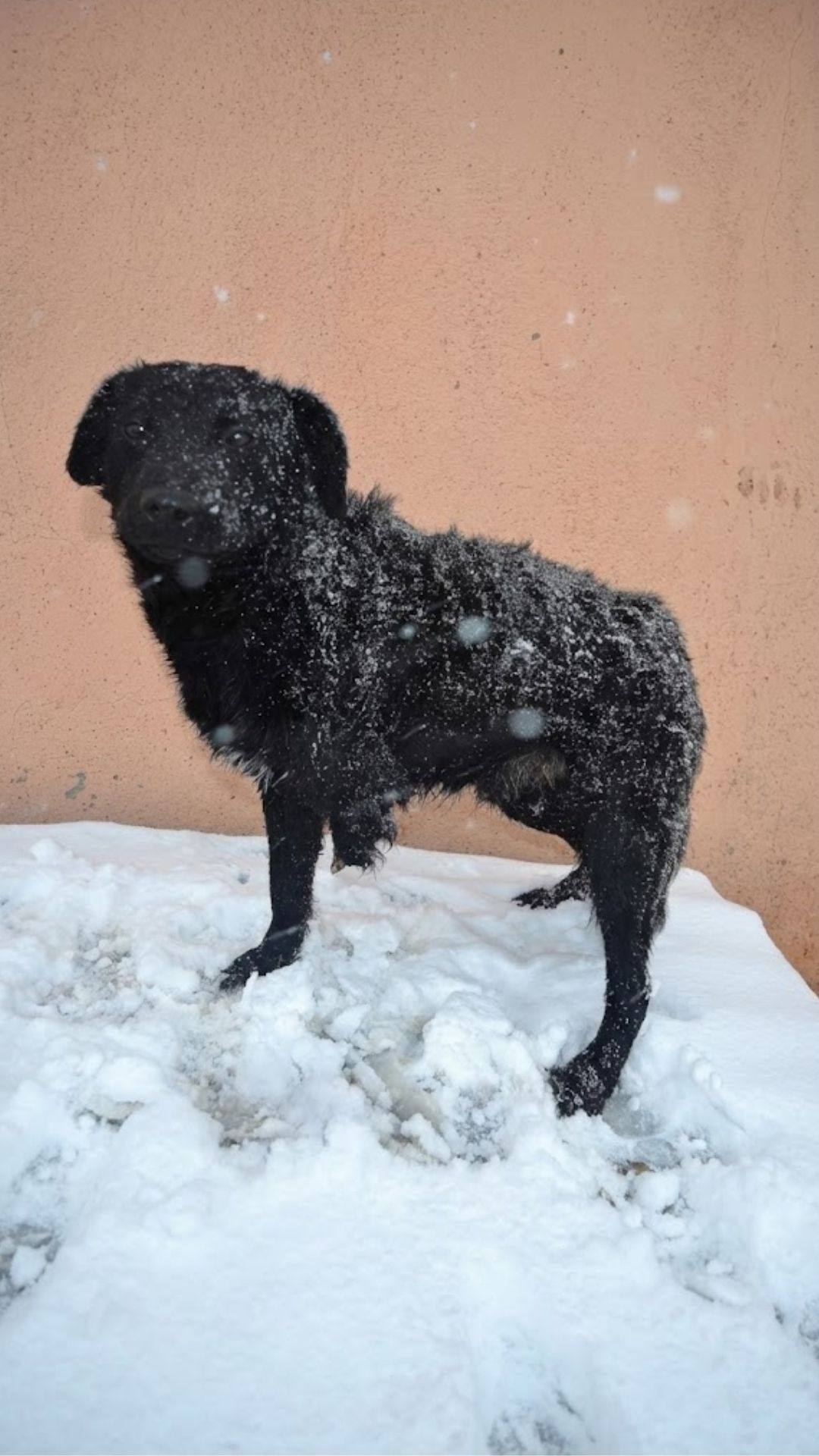 Today, the black dog who nearly froze to death is unrecognizable from that terrified shadow.