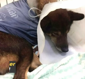 The dog was rushed into surgery to remove the massive growth. It was a complicated procedure, especially for a dog whose body had just endured the trauma of a natural disaster. But just as he had clung to that wooden fence, he clung to life.