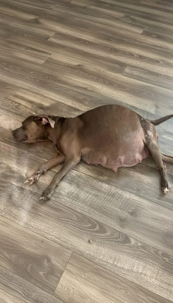 Rosemary was found tied at the edge of a world that didn’t want her. Her entire existence had been reduced to the length of a fraying rope and the agonizing uncertainty of the passing hours. She was heavily pregnant, her body strained to its absolute limit, yet she stood with an uncanny, stoic calm as the rescuers approached. There was no growl, no pull against the tether; there was only the profound exhaustion of a soul that had been waiting far too long for a hand to reach out and say, “It’s over now.”