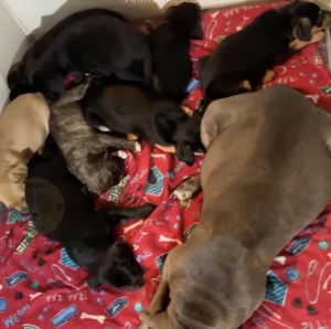 The task of raising eleven puppies is a monumental challenge for any dog, let alone one recovering from trauma. The rescue team stepped in as Rosemary’s “pack,” sharing the burden of care. Volunteers worked in shifts around the clock, assisting with feedings and ensuring Rosemary herself could finally rest. As the puppies’ eyes opened and their wobbly legs found their strength, the shelter transformed into a vibrant playground of hope.