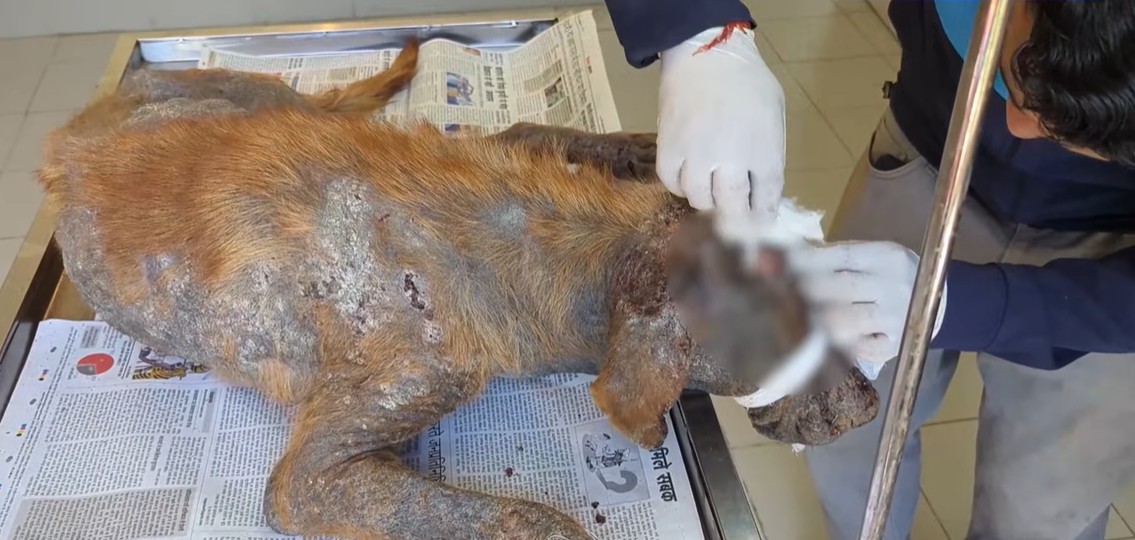 What was truly remarkable wasn’t just the dog’s physical survival, but its emotional resilience. Even in a state of extreme weakness and agony, it found the strength to trust the strangers who reached out to help. It seemed to understand that the hands touching its wounds were not there to cause pain, but to take it away.