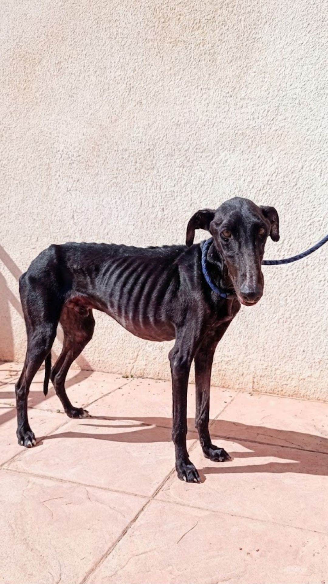 Lying on the examination table, Coco looked less like a dog and more like a collection of sharp angles. A healthy female Greyhound should weigh close to 75 pounds.