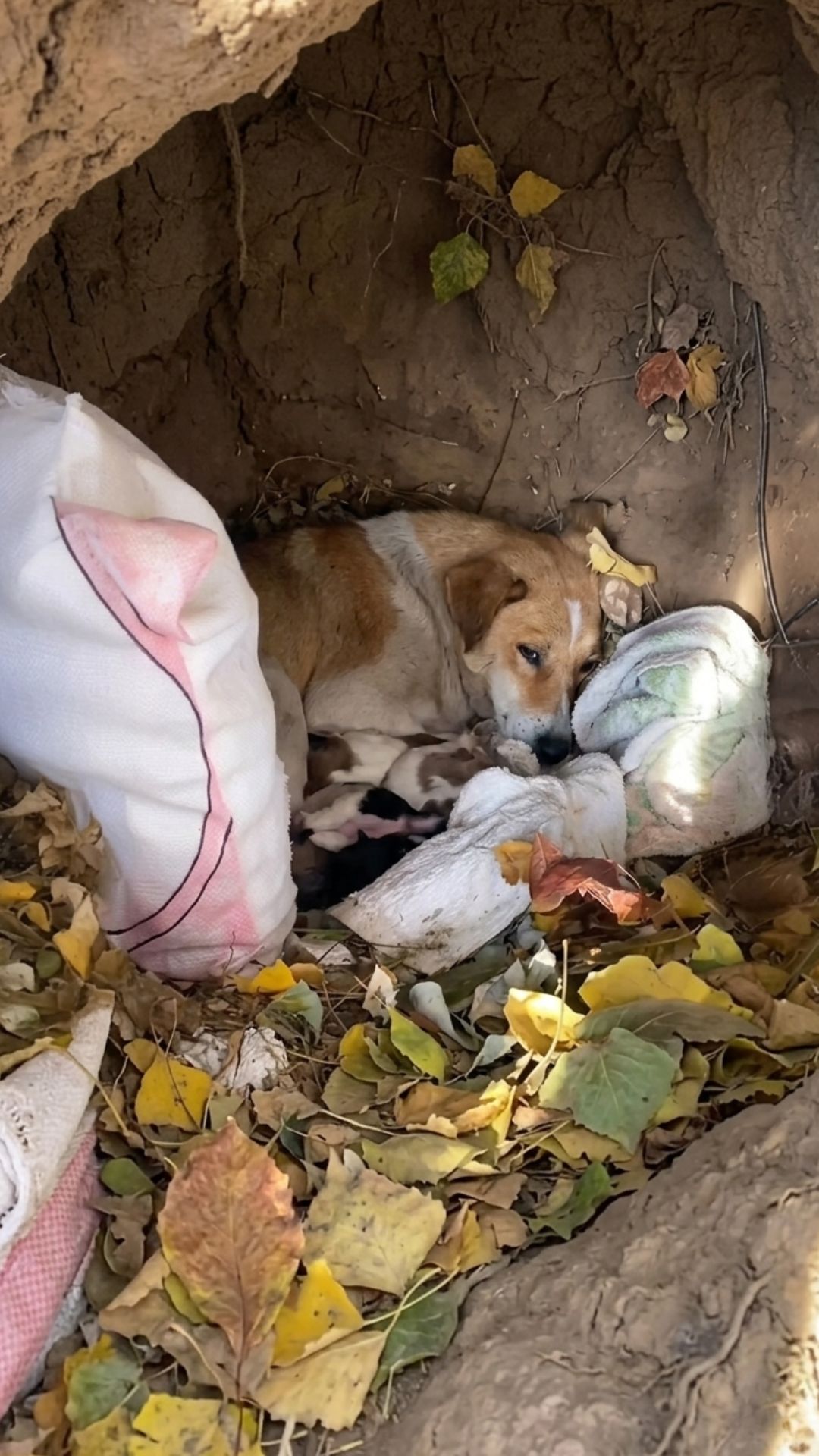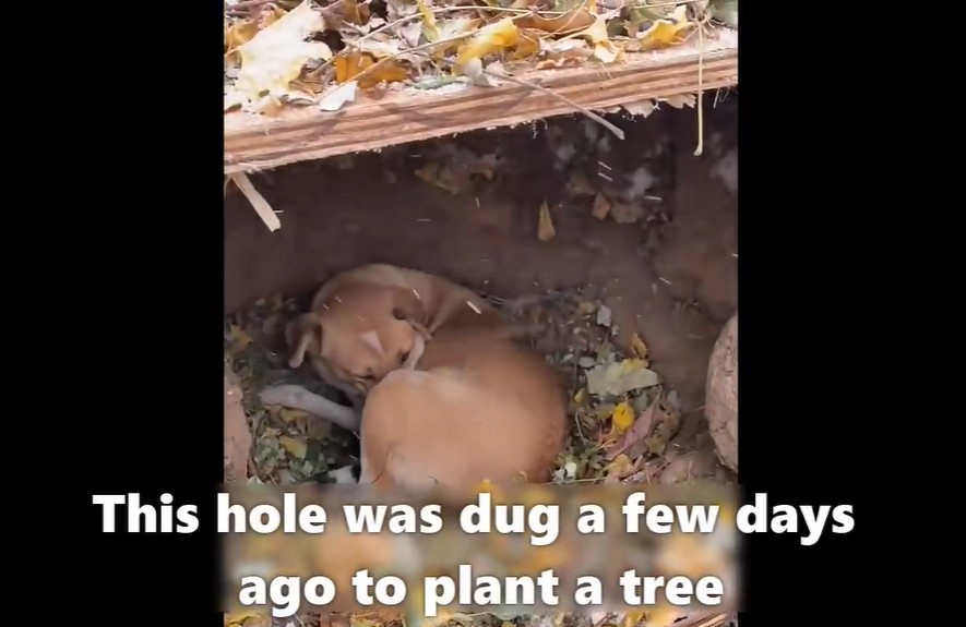 Following the desperate whimpers, he discovered a shallow hole that had been dug a few days prior to plant a tree. Inside that frozen pit, partially covered by the heavy snow, lay a stray mother dog.