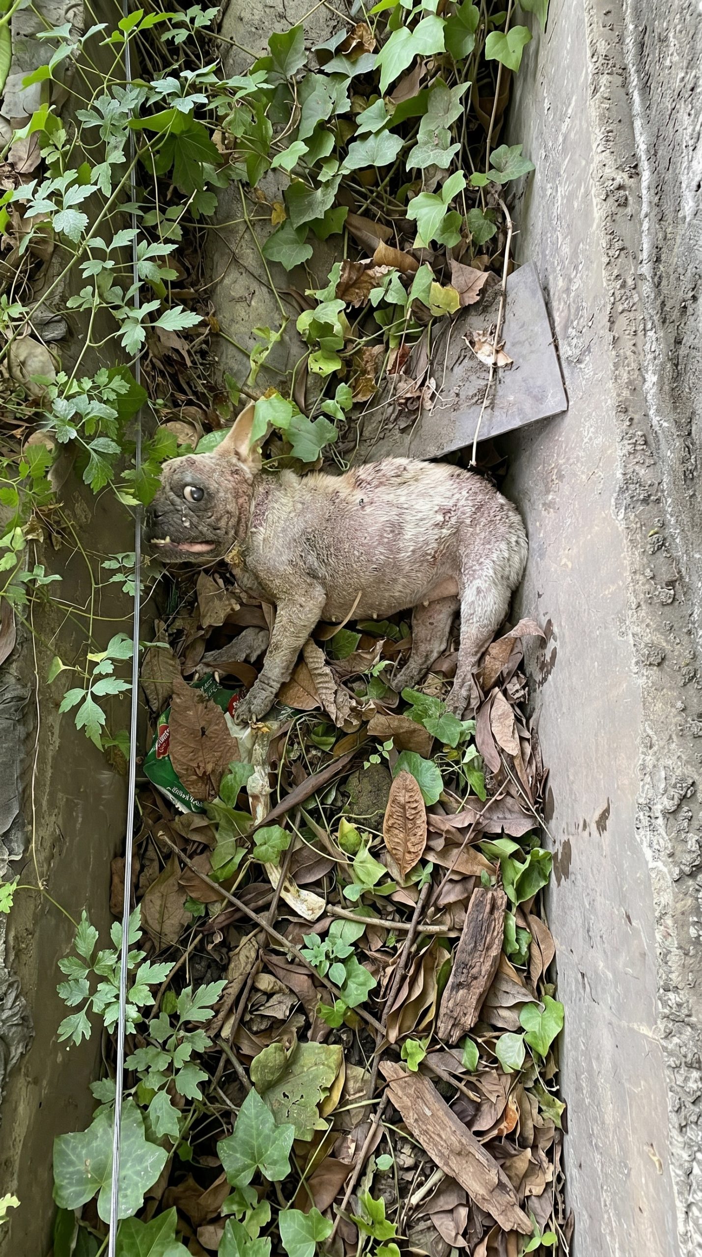 Amidst the refuse lay a frail, trembling silhouette, her skin entirely stripped of fur and covered in severe, deeply neglected wounds that spoke of years of quiet agony.