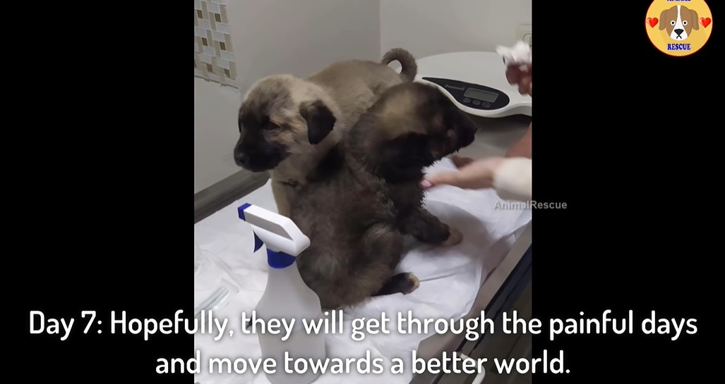 By Day 3, a small miracle occurred. She woke up and managed to eat a little bit of chicken. Her two puppies, named Vita and Maya, were just under a month old and clung to her side like little shadows. By Day 7, Tanee’s condition had improved enough to offer real hope, though she would require long-term hospitalization.