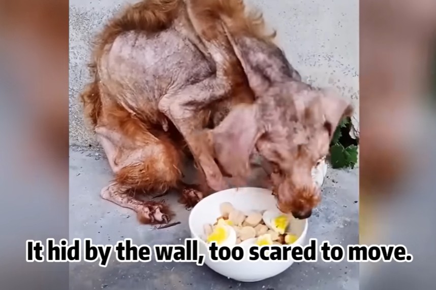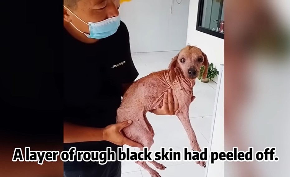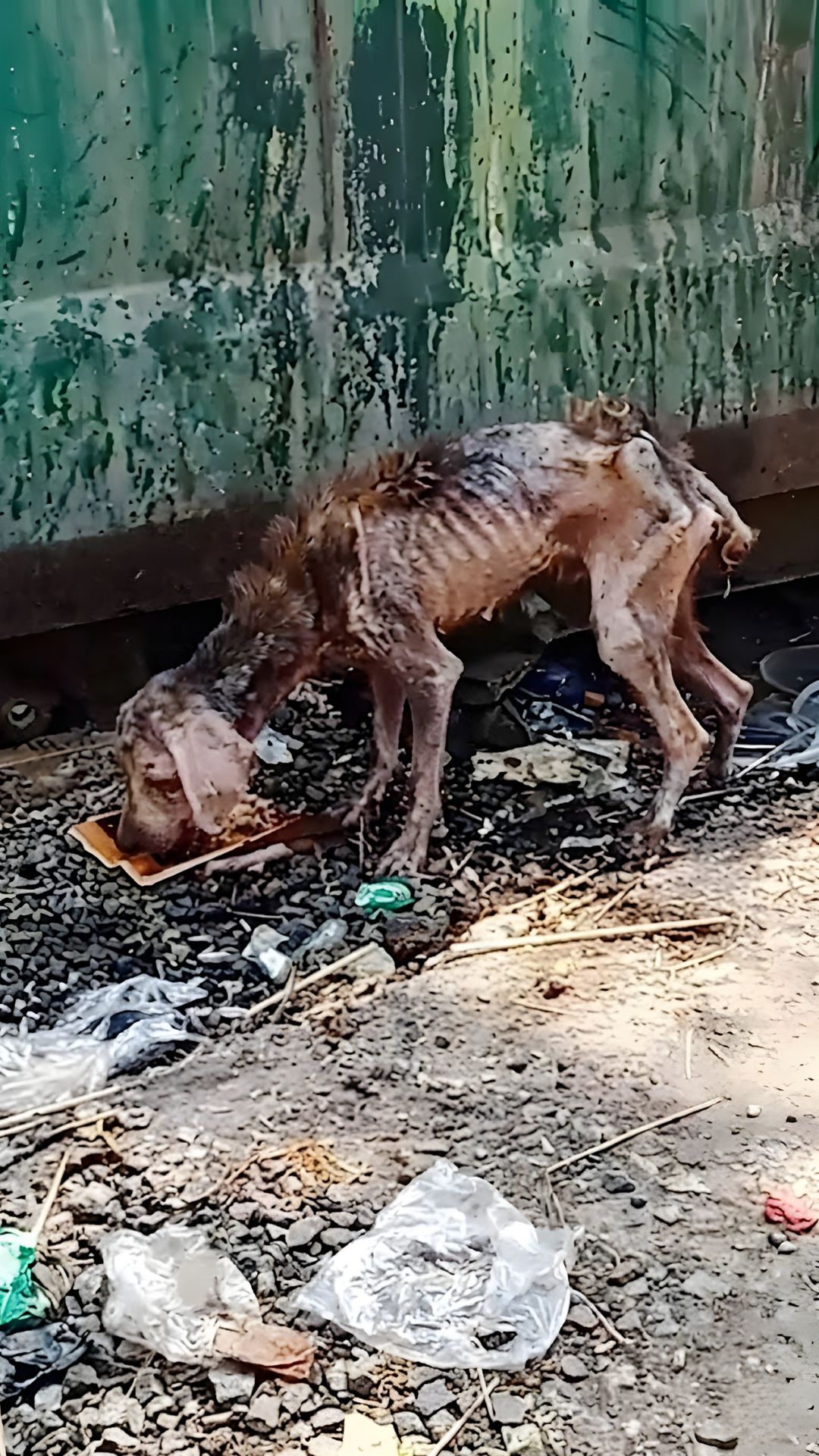 Looking closer, the man’s heart sank. The dog’s ribs were pushing against its skin like a cage, its eyes were clouded with thick discharge, and its body was covered in hidden wounds.