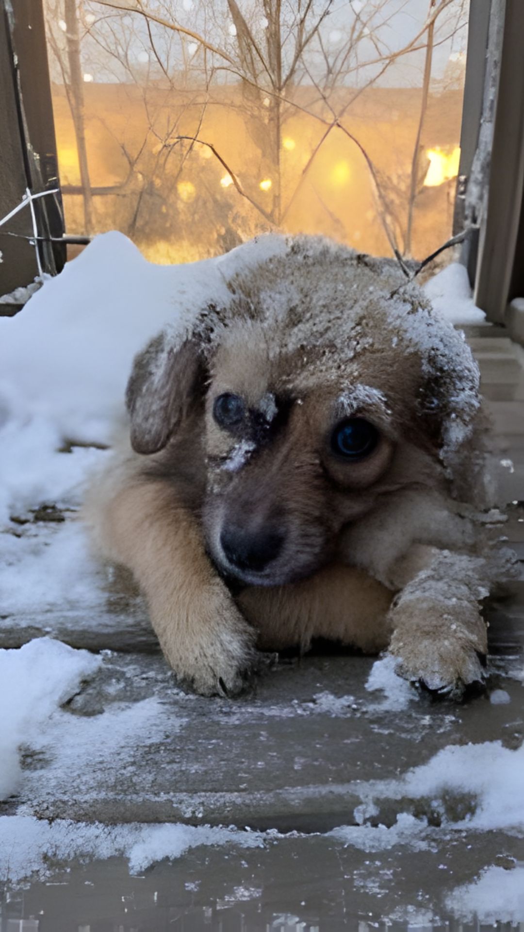 Winter has a cruel way of highlighting the fragility of life. On a night so bitter that the air seemed to crack with frost, a tiny tan puppy named LittleFoot was found curled against a frozen porch. He had become so small, so still, that he almost blended into the shadows of the wood—a fragile life quietly fighting a losing battle against the relentless ice. He wasn’t crying out; he had already learned that the world often met his cries with silence. He was simply waiting for the end.