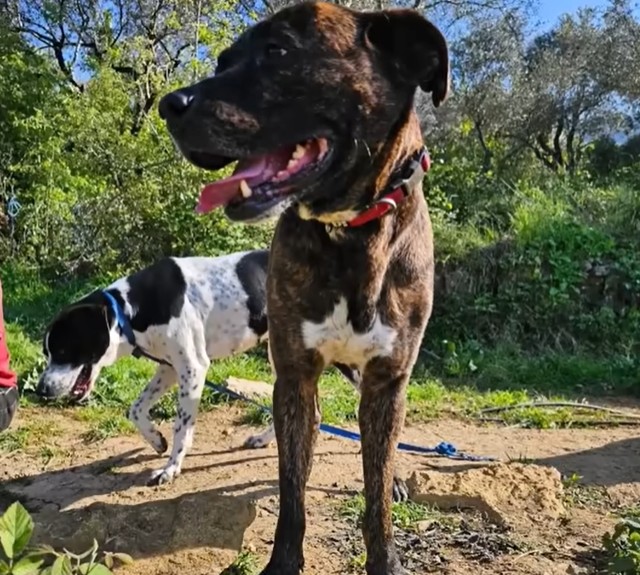 He lives with his best friend, Powder, another rescue dog who shares his joy for life. They play together, run together, and sleep side by side.