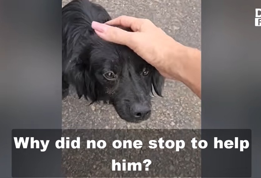 He was curled up by the side of the road, exhausted. When he lifted his head and our eyes met, I felt my throat tighten. He didn’t try to run. He just looked at us with a mixture of fear and relief, as if he had been waiting for this moment for a lifetime.