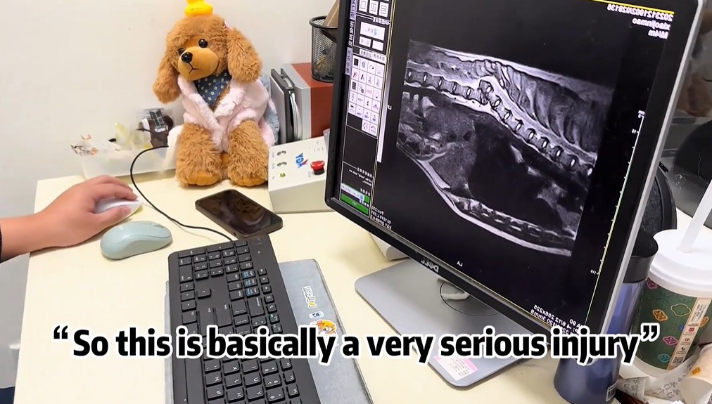The unfamiliar environment left the little guy completely overwhelmed. He refused to eat or drink, trembling from a mixture of exhaustion and pain. Early the next morning, X-rays painted a grim picture: a severely fractured thoracic vertebra.