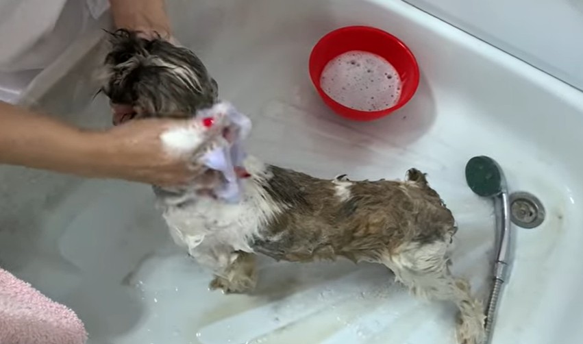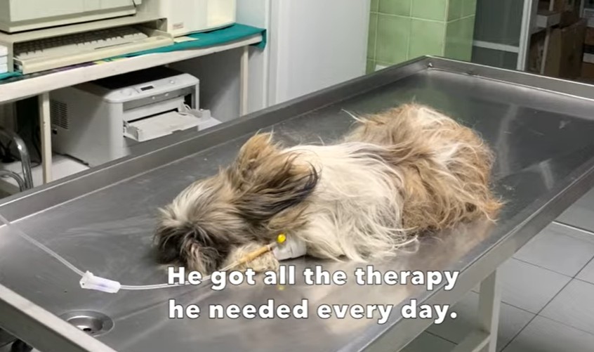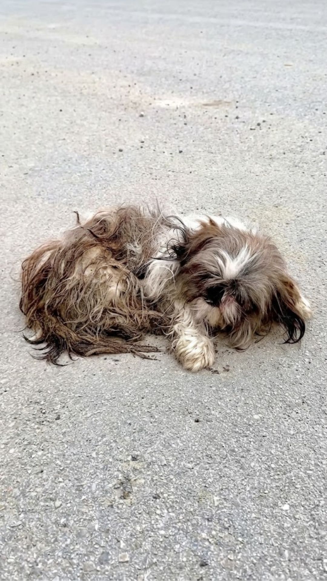 His long, once-beautiful Shih Tzu coat was heavily matted, filthy, and clinging tightly to his exhausted body. The clinic staff carefully trimmed away the worst of the tangled fur, hoping to offer him some immediate physical relief.