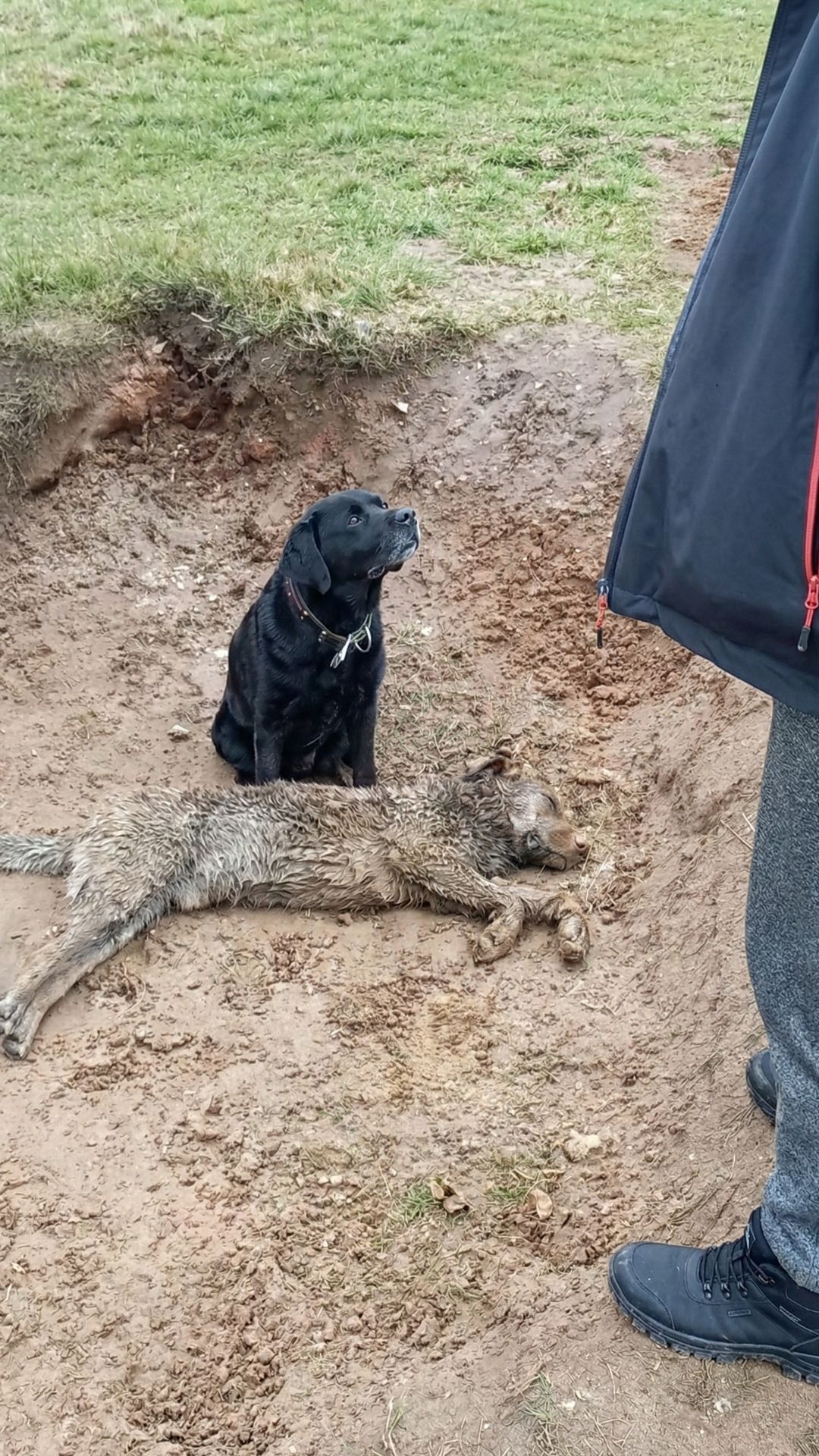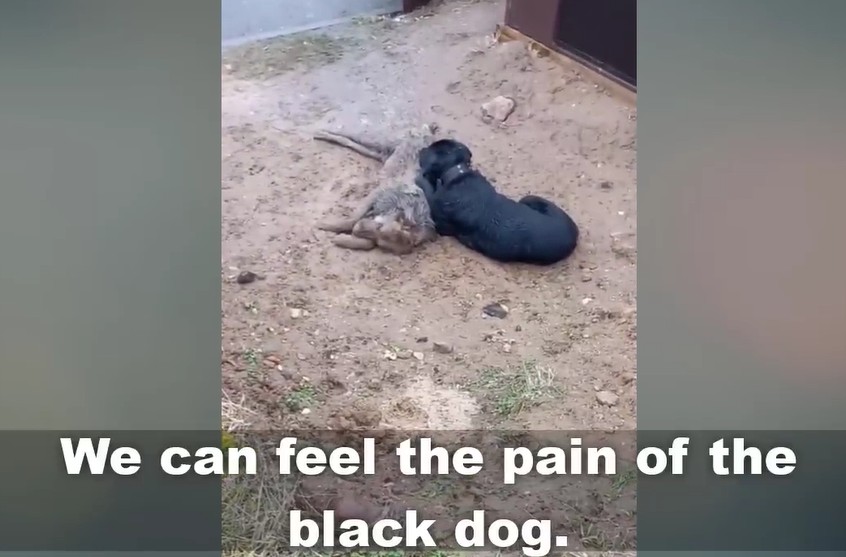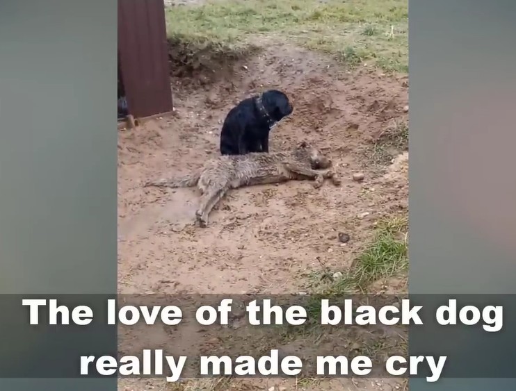 The black dog was exhausted. His fur was matted with mud, and his eyes were rimmed with the redness of a soul that had been crying out in silence for days. Beside him lay his mate, her body already cold and stiffened by the elements. To him, she wasn’t “gone.” To him, she was simply sleeping too deeply, and if he just stayed close enough, if he just nudged her one more time, she might wake up.