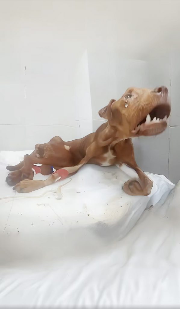 At the veterinary clinic, the severity of Dibo’s condition became clear. He was critically malnourished and dangerously dehydrated. His body was so depleted that even basic functions were under strain. Standing was impossible. Eating on his own was out of the question. The medical team immediately began intensive care — administering fluids, medications, warmth, and constant monitoring. Every moment mattered, and everyone involved knew this was a fight for his life.