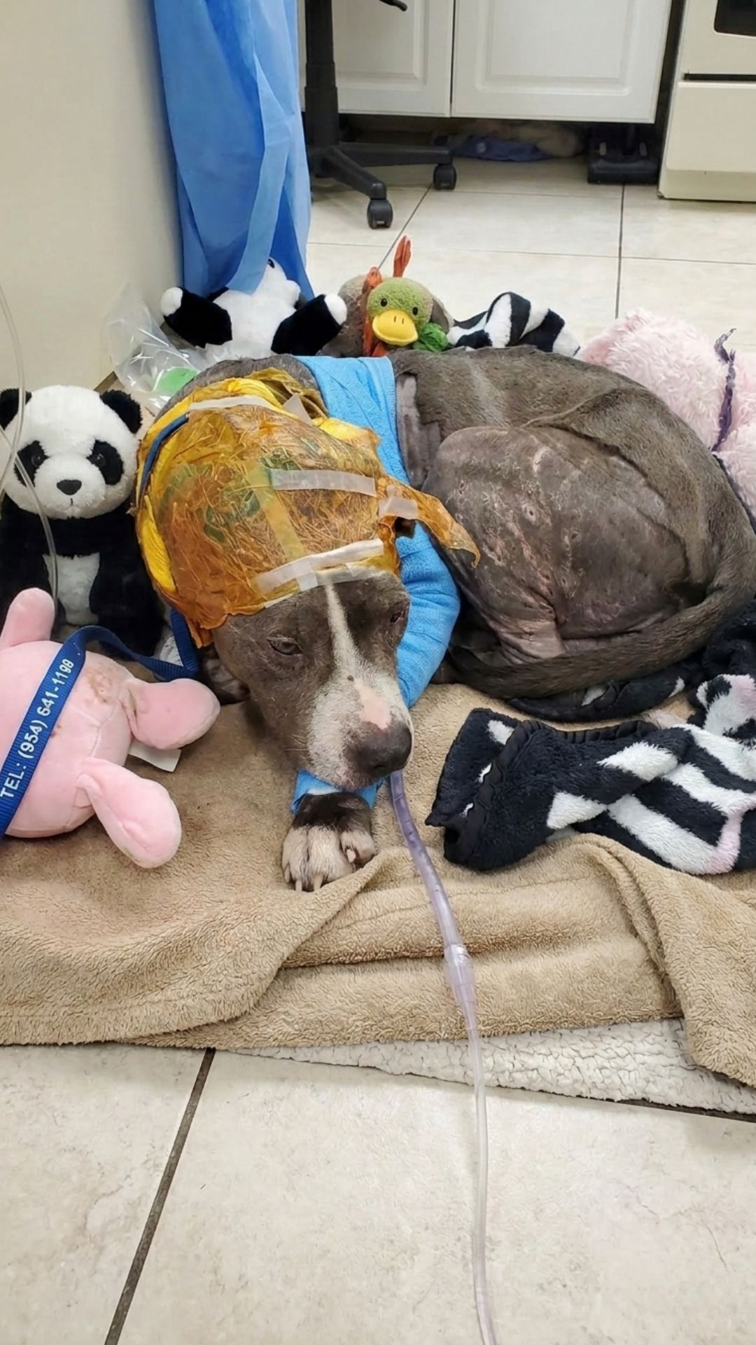Following the surgery, Leo was placed in 24-hour intensive care. He was hooked up to IV fluids, given heavy antibiotics, and required multiple painful procedures just to change his bandages.