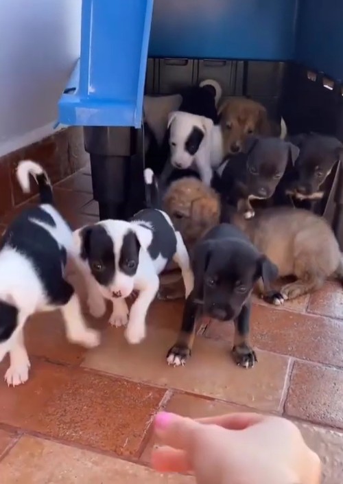The transformation was immediate. On a real, warm bed, the puppies slept better than they ever had in the field. The silence of the scrap-wood shelter was replaced by the lively sounds of hungry pups. Now, whenever they heard a human voice, they didn’t cower—they asked for food.