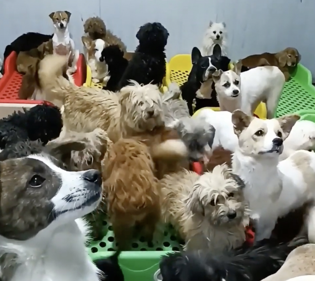 Shelter staff often paused to reflect on his progress. Surrounded by dozens of other rescued animals, each carrying their own past, he became a quiet reminder of why rescue work matters. Visitors noticed him too. They would kneel beside his crate, and he would lean forward, pressing his head gently against the bars, welcoming affection without hesitation.