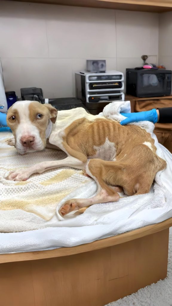 Her body told the story plainly. She was dangerously thin, ribs visible beneath a lifeless coat, paws resting where comfort had long been absent. Yet it wasn’t her condition that stopped people in their tracks.