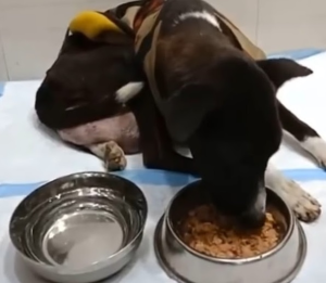 Instead of rushing into a high-risk surgery, they focused on the dog behind the disease. Midnight was placed under 24-hour observation. He was given fluids, nutrition, and something he had never known—gentle, consistent care. For days, the clinic held its breath.