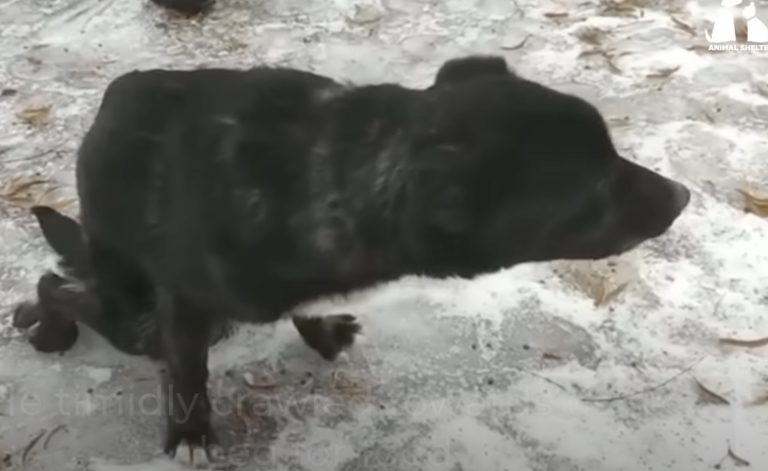 She had tried approaching people before. Each time, hope ended the same way. Some looked away. Others chased her off. Eventually, Mushka stopped trying. Exhausted and afraid, she pressed her body into the cold ground and waited, no longer expecting kindness from the world around her.