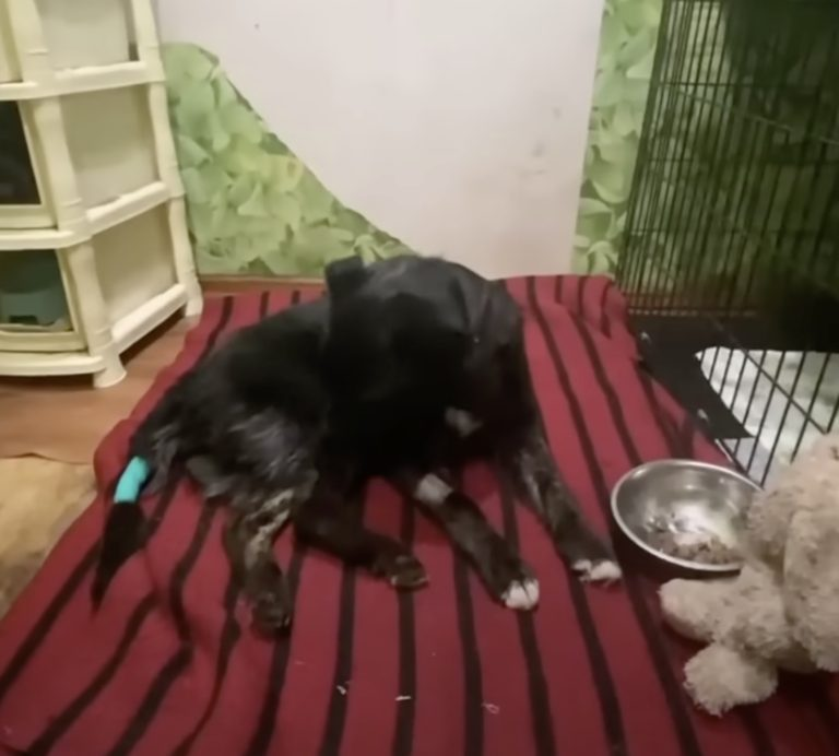 At the veterinary clinic, the reality of Mushka’s condition became painfully clear. Her body was covered in ticks, the result of prolonged neglect. A dangerous tick-borne illness had taken hold, attacking her red blood cells and leaving her weak and feverish. Her temperature was dangerously high. Without immediate treatment, she would not have survived much longer.