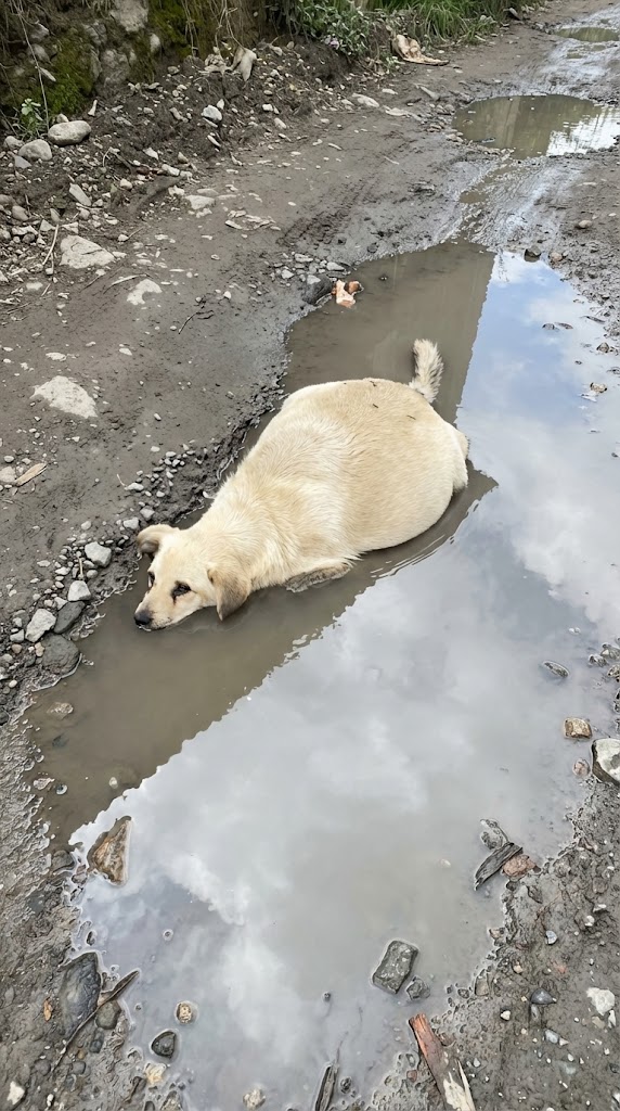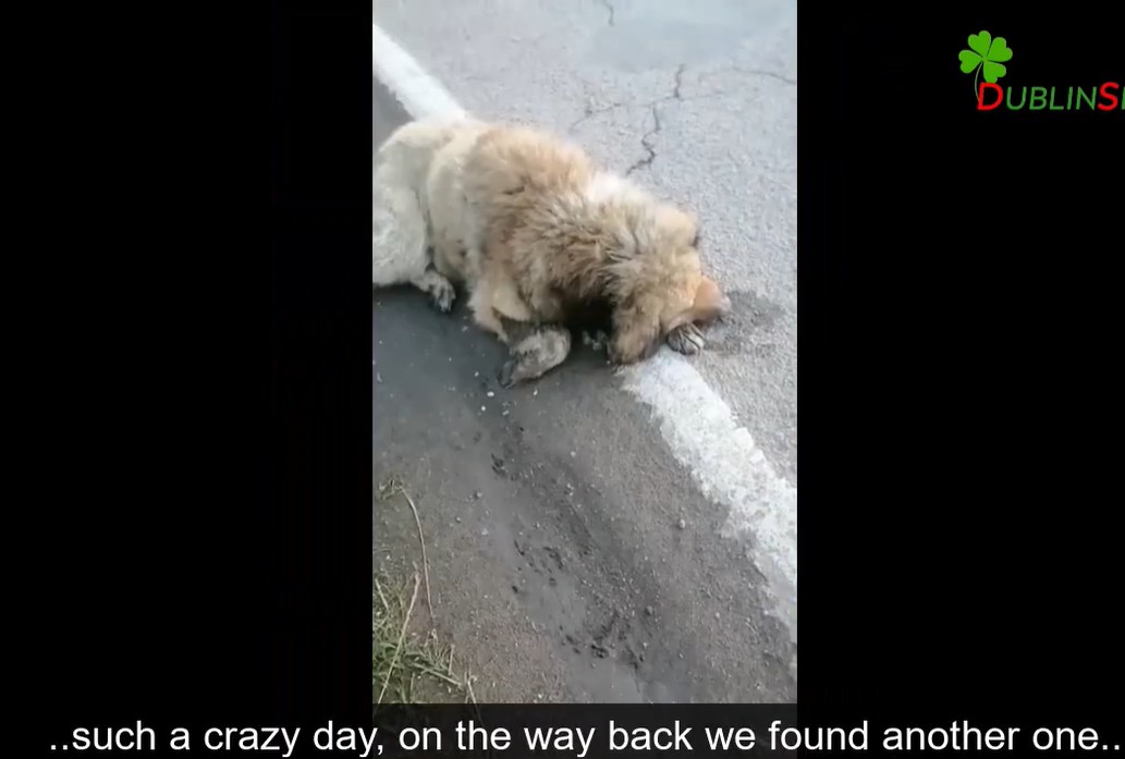 While rushing the pregnant mother to the clinic, the rescuers spotted another soul in need. A second dog lay stretched out on the road, motionless, with nearly no hope left in his eyes.