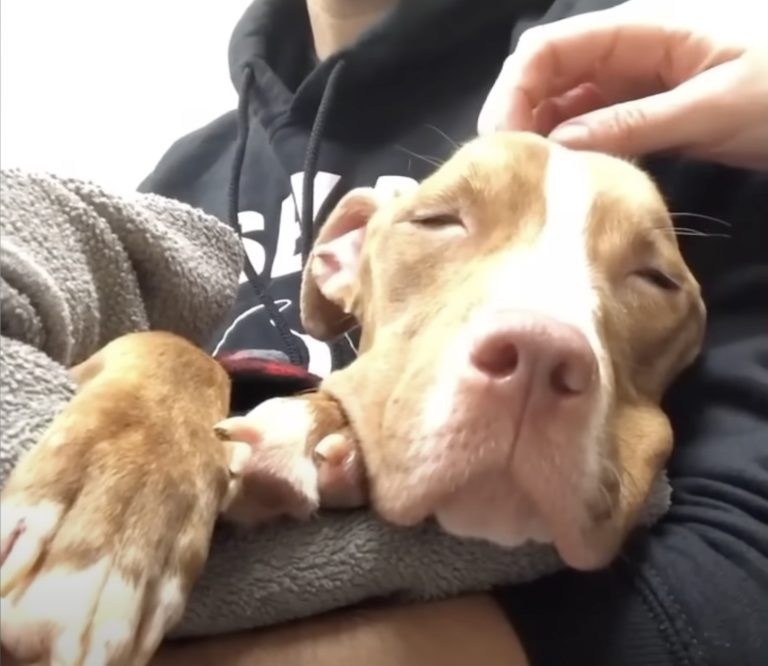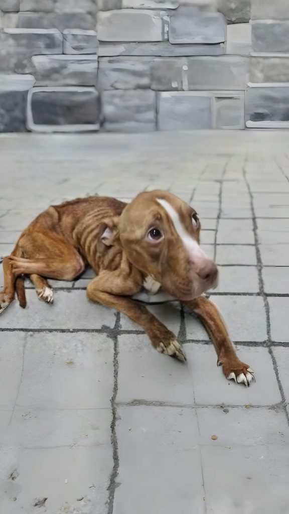 Neighbors reported a pit bull lying still in a quiet yard. No barking. No movement. Just a body that looked as if it had given up. When rescuers arrived, the silence said everything. Reese was alive—but only just. Her ribs pressed sharply against her skin, her coat dull and lifeless, her eyes heavy with exhaustion. She didn’t react. She didn’t resist. She simply waited.