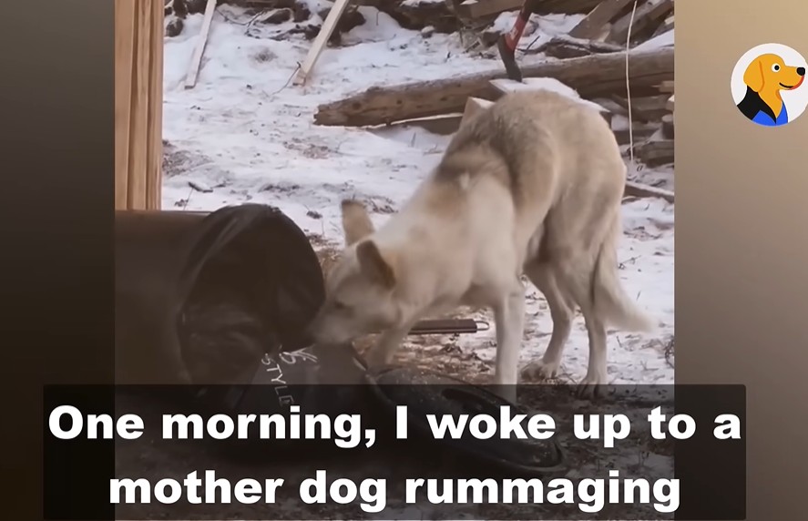 The morning began like any other, until a rustling sound outside broke the silence. A stray dog was desperately rummaging through a residential trash can, looking for any leftover scraps to satisfy her gnawing hunger.