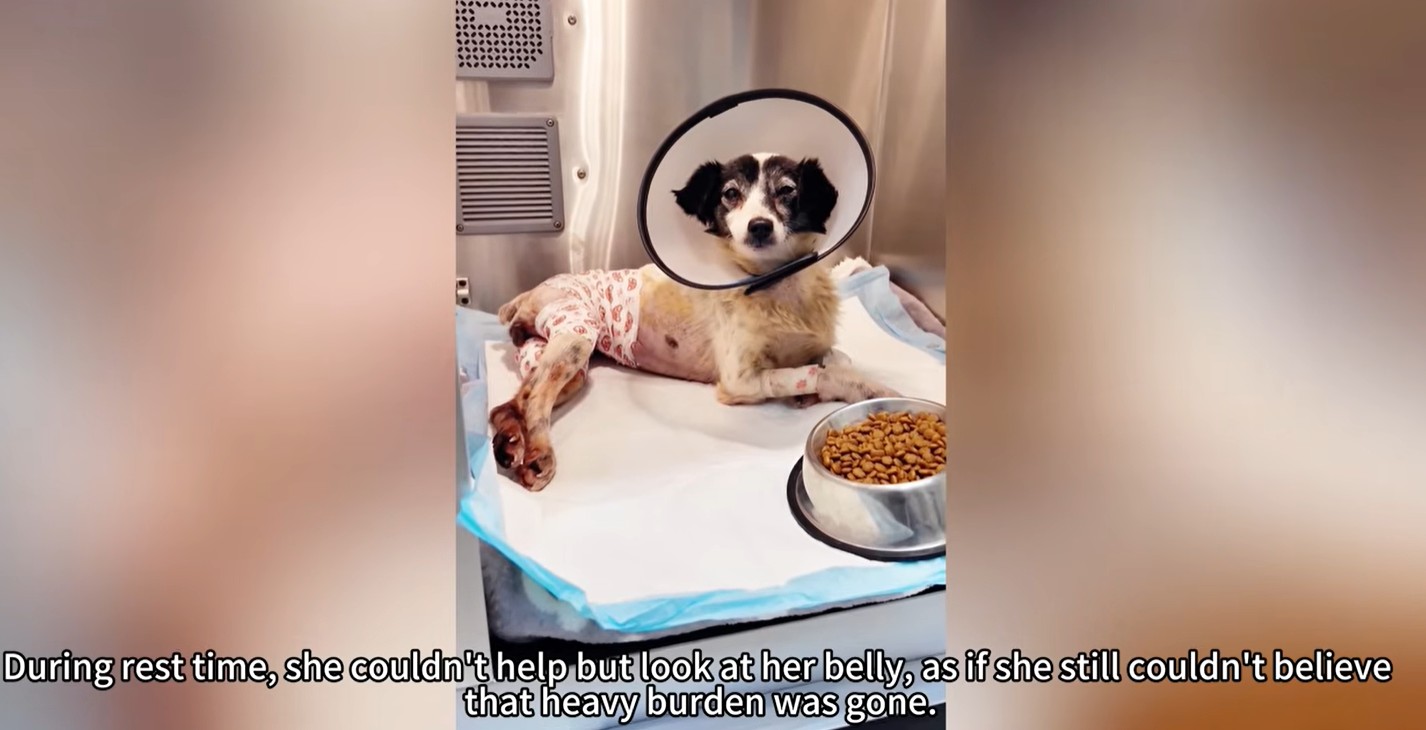 When she tried to lie down, she couldn’t rest normally. The mass was so large that she had to keep her hind legs raised in the air just to relieve the pressure.