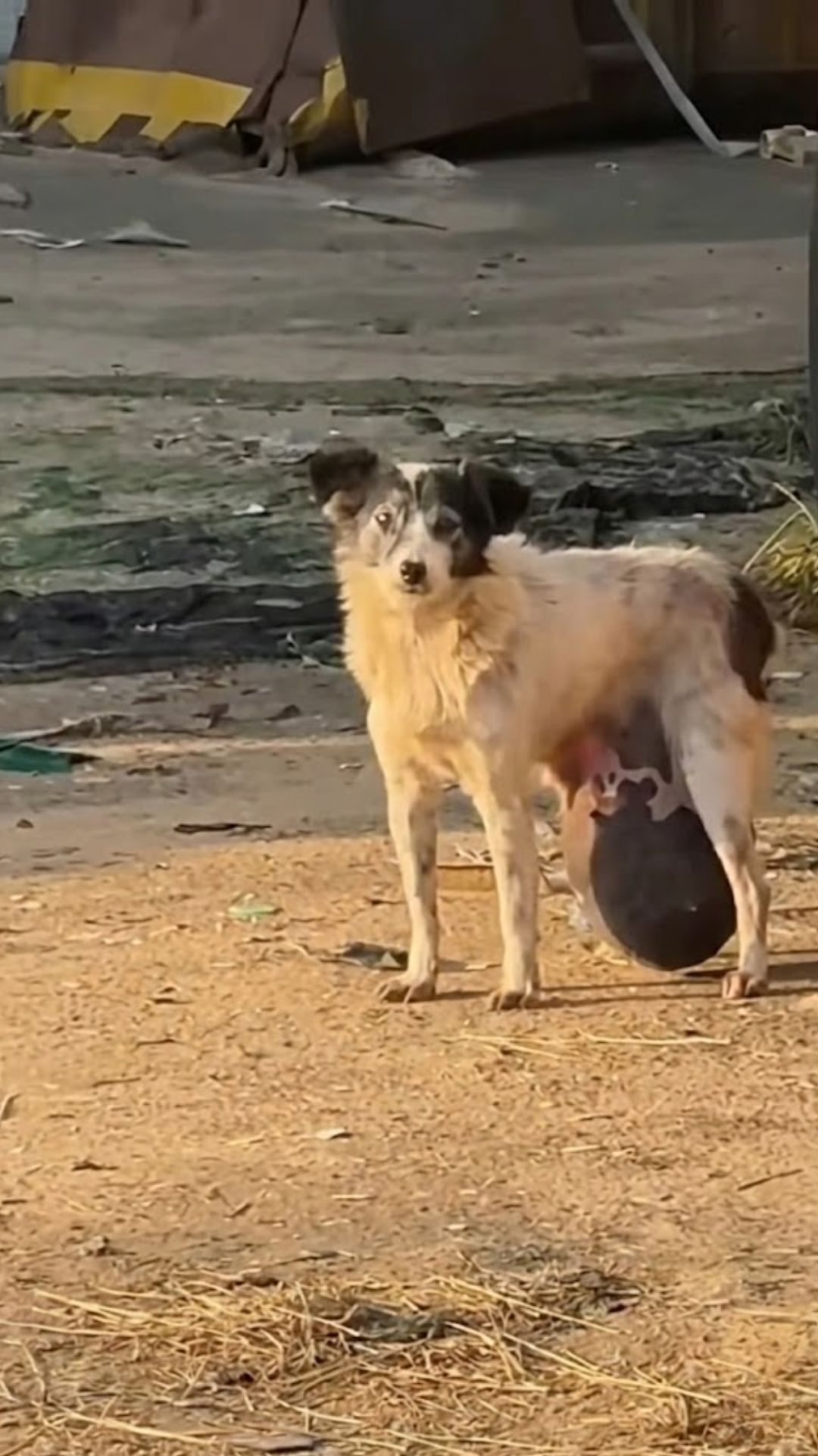 The plea came in the form of a shaky video. It showed a small, fragile dog stumbling along a dusty road. But she wasn’t just walking. She was dragging something. A massive, heavy growth hung from her belly, swaying with every painful step.