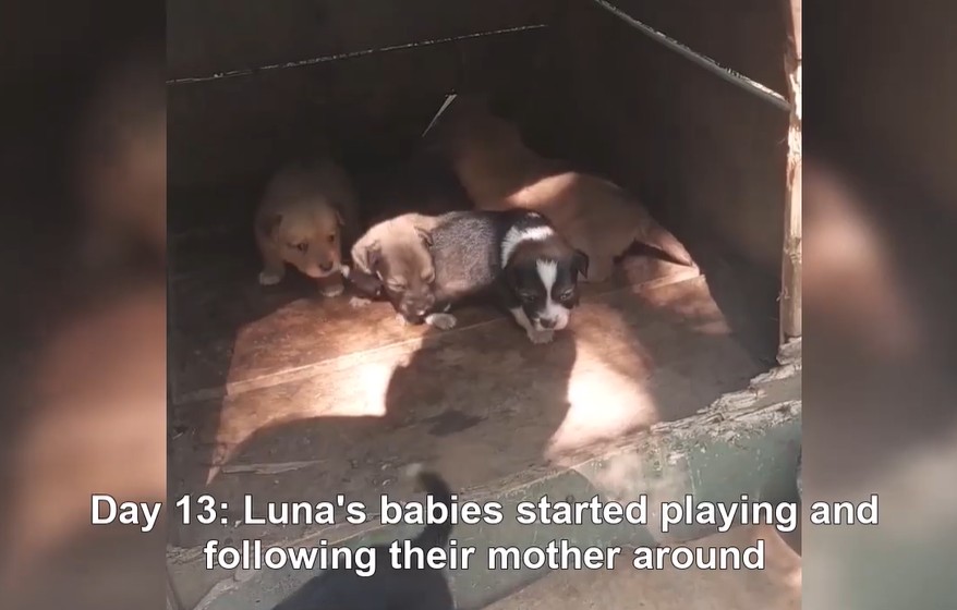 By day 13, Luna’s own puppies started happily playing and following their proud mother around the yard. A month later, her babies had grown strong and were finally ready for adoption, eagerly heading off to their forever homes.