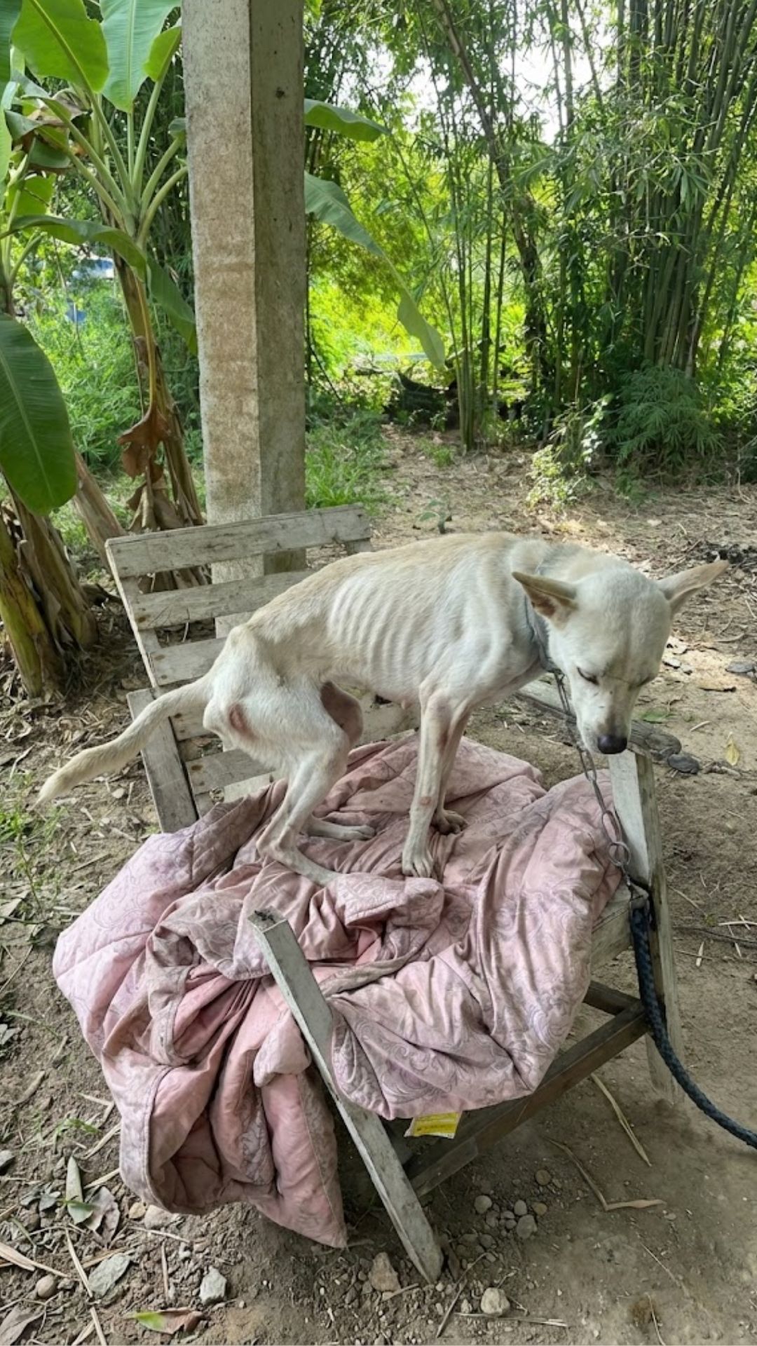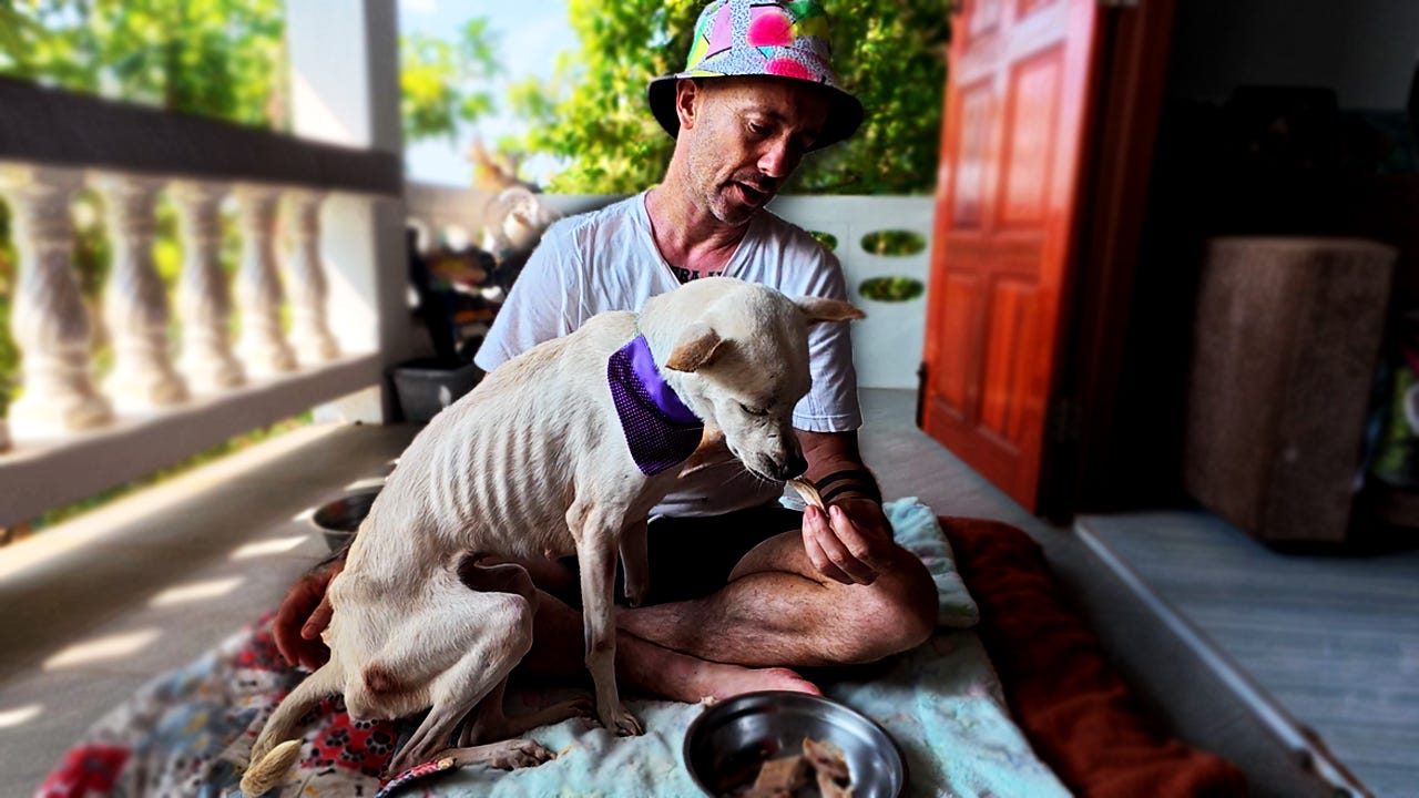 We started with the basics. Removing the heavy, rusty chain that had marked her neck. Clearing the ticks. And then, the most dangerous part: food.