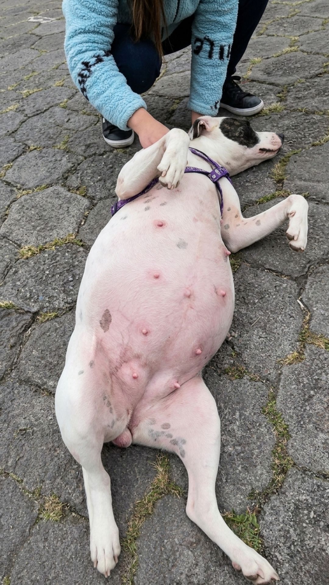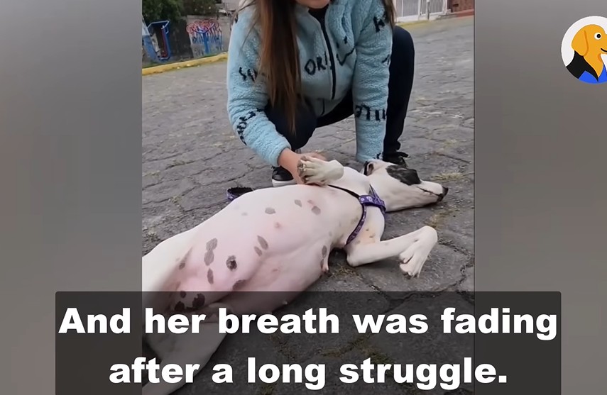 For one heavily pregnant mother dog, that loneliness was suffocating. She lay completely motionless on a hard, unforgiving street. Her body was exhausted, pushed to the absolute limit. She was in the final, grueling moments of labor, yet she had no safe place to bring her babies into the world.