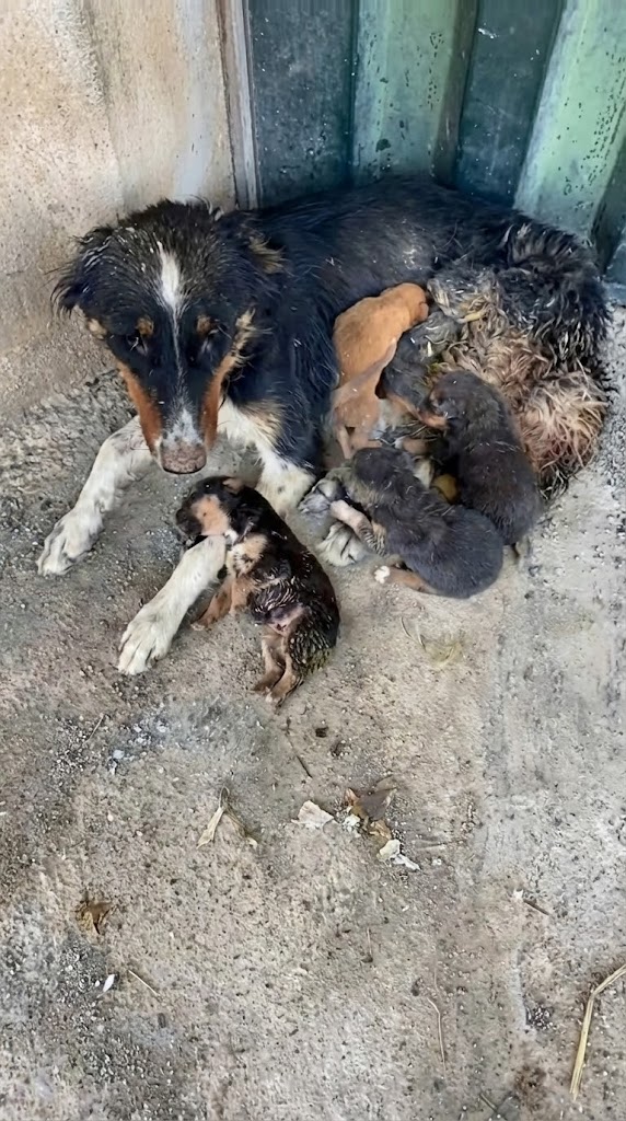 When rescuers arrived, the sight was gruesome. Eli was in dire medical need, her energy completely spent. The most heartbreaking part? Her puppies were crying in hunger, and although Eli lay perfectly still to let them nurse, her breasts were empty. She was giving them everything she had, but her body had nothing left to give.