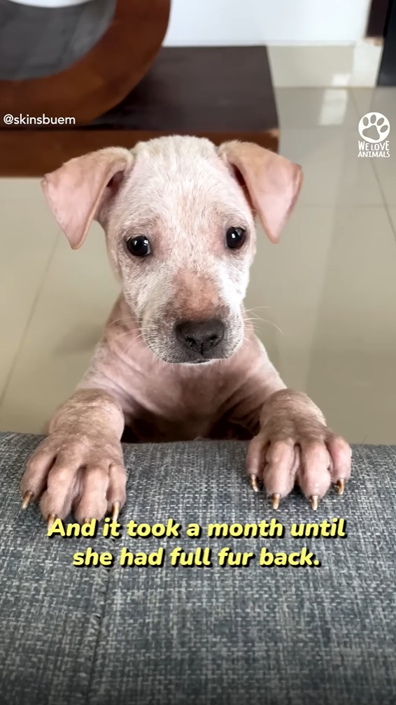 It took a full month of careful attention, good food, and endless love, but soon, her bare skin was completely covered in a beautiful, healthy coat of fur.