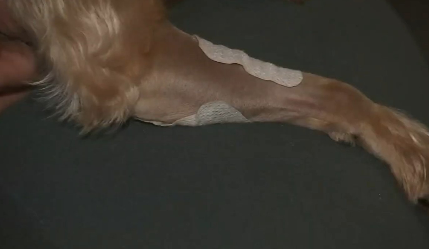 Starla is currently making a steady recovery. Her legs are bandaged, and her walk is a little wobbly, but she is expected to heal.