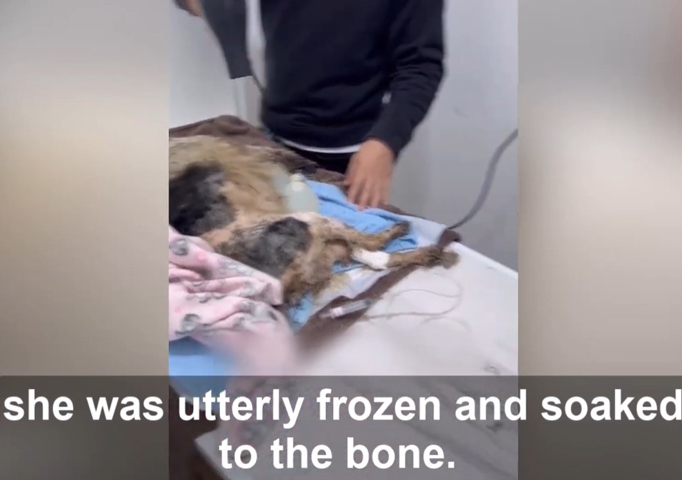 When Hope finally reached the emergency clinic, she was a portrait of absolute despair. She was soaked to the bone and completely frozen.